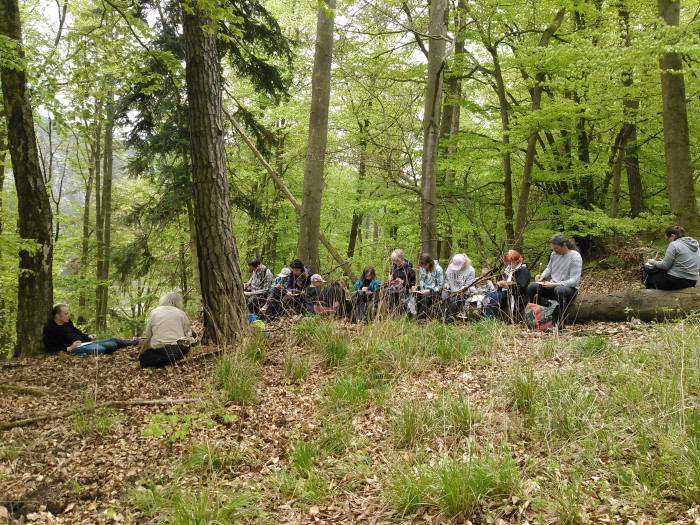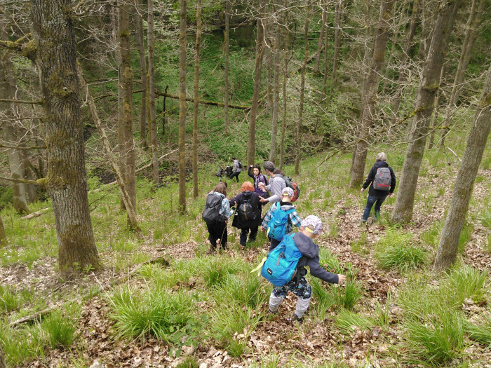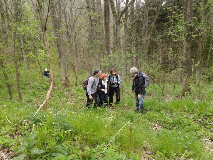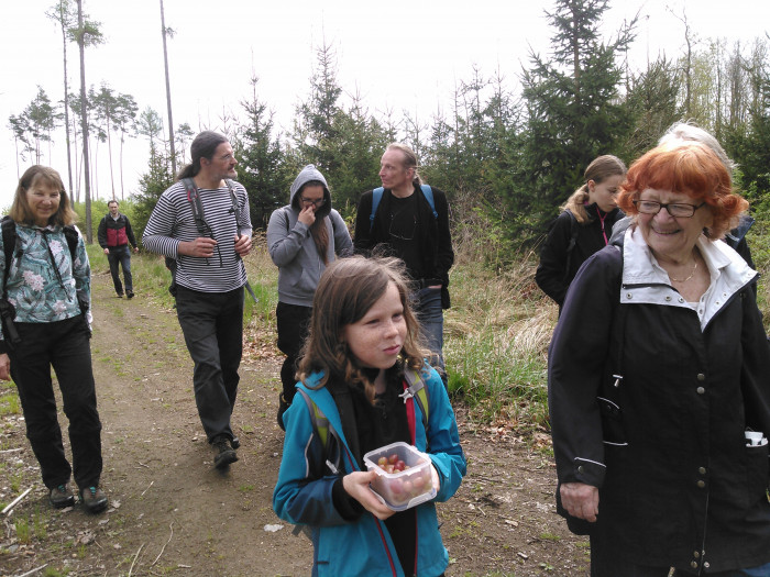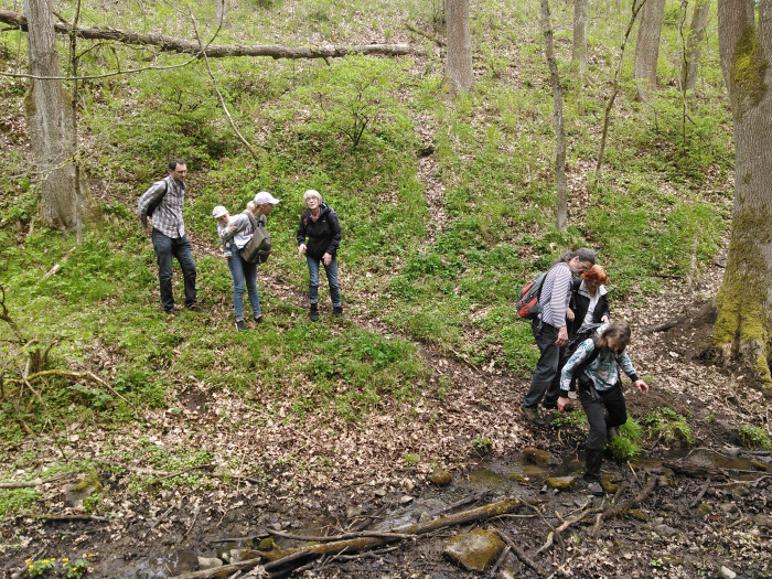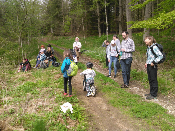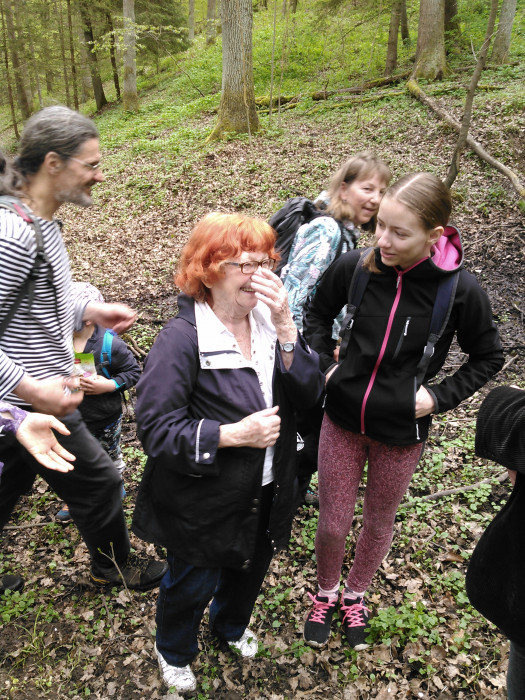 Na začátku putování věnovaného řece jako prameni paměti jsme se nás sešlo sedmnáct, a to ve věku od tří až do devadesáti tří let. Ano, je to neuvěřitelné, ale mezi nejmladším a nejstarším účastníkem, kteří zvládli devět kilometrů občas velmi náročným terénem, bylo přesně devadesát let! Šli jsme krásným vlhkým a bohatě zeleným bukovo-dubovým lesem, pohodlnými pěšinami, ale místy i mimo značky, po strmých svazích a přes potůčky a lužní mokřady.