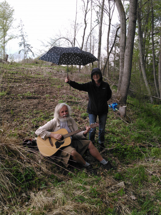 Miloš pak vodě zahrál a zazpíval a mezitím se příznačně spustil déšť. V poklidu jsme došli zbytek cesty. Krásné, vydařené putování!
