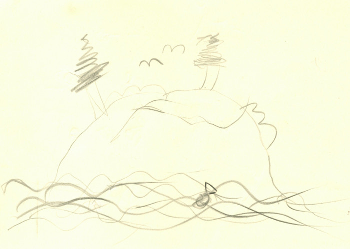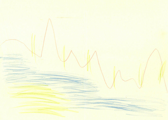 Čekal nás okruh nad řekou Vltavou u jejího soutoku s Otavou u Zvíkova. Vltavu jsme pro putování vybrali pro její symbolický význam ve vnímání českých dějin v kontextu krajiny a kvůli pocitu domova, který vzbuzuje. První větší zastávku během cesty jsme udělali na skalnatém zalesněném ostrohu zhruba 30 metrů nad řekou a věnovali ji vnímání krajiny: Všichni účastníci měli za úkol spontánně za jednu minutu nakreslit, co jim přijde na mysl, když se řekne krajina. Pak měl každý možnost svůj záznam popsat, vysvětlit ostatním, a následně jsme hledali shodná pojetí i prvky, ale také pojetí jedinečná. Potom jsme si povídali o tekoucí vodě v krajině jako o prostorotvorném prvku, v podstatě nejsilnějším (nepočítáme-li činnost člověka) za dobu lidské historie na území českých zemí. Zajímala nás i důležitost řek a potoků jako přirozených cest a důležitých topografických bodů, jejich význam v doplňování prostoru o prázdnotu, nezaplněnost a veřejný akcent. Poté měl každý ještě ke svému ztvárnění krajiny doplnit slovy či kresbou, co je pro něj v krajině, kterou jsme dnes viděli a prošli, dokladem, symbolem letitosti, paměti (ať už lidské perspektivy, nebo perspektivy celé planety).