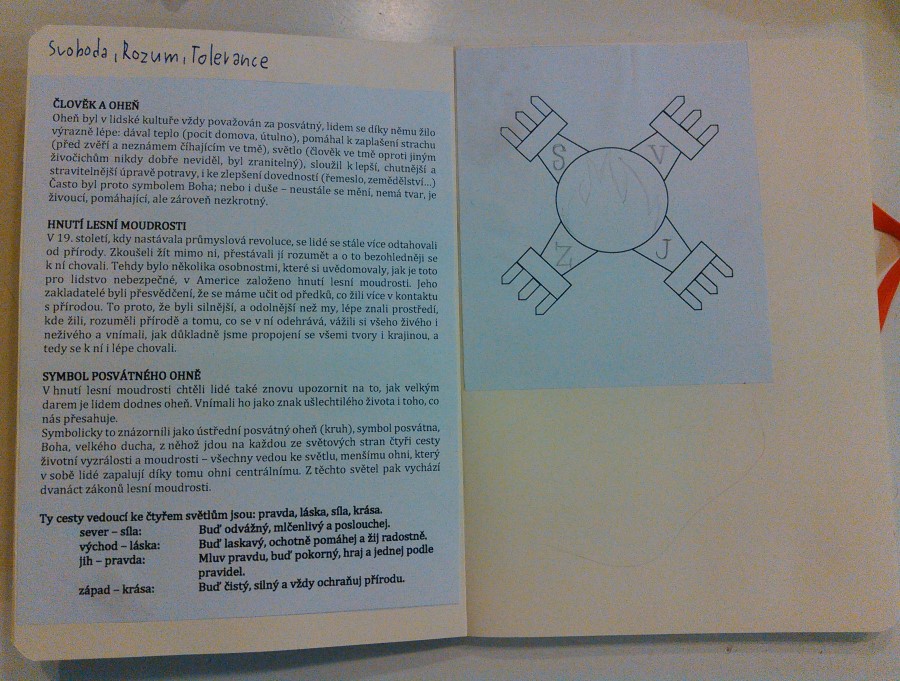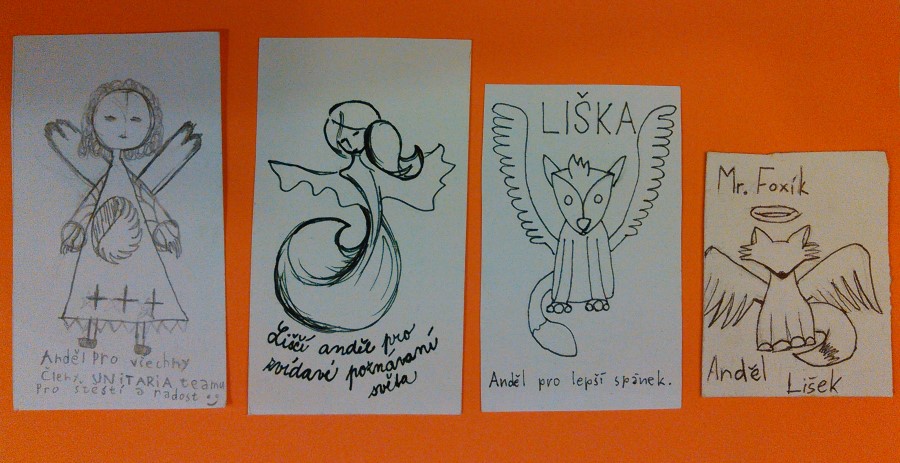 Další schůzku jsme měli v neděli 21. února a téma Já jsme rozšířili na Já a co mne přesahuje. Od minule jsme měli úkol, udělat každému obrázek anděla, který by mu pomáhal v jeho obavách, věcech, které mu třeba tolik nejdou, nebo i v plnění jeho snů. A jednoho takového jsme měli udělat i každý pro sebe. Bylo zajímavé sledovat, jak se navzájem známe a co bychom chtěli druhým zjednodušit, v čem pomoci, kdyby to bylo v našich silách (a to trochu je). Pak jsme hráli hry a také si povídali o tom, které vlastnosti jsou pro každého z nás důležité a které jsou důležité pro nás všechny společně - na kterých se shodneme. Třeba radost a veselost. Říkali jsme si, že unitáři se na některých také po celém světě shodli: na rozumu, svobodě a toleranci. Mezitím jsme hráli různé hry na šikovnost a obratnost. Pak jsme se ještě chvíli vrátili k povídání a zastavili se u toho, co nás přesahuje a a jak to můžeme vyjádřit. Lidé používají odjakživa symboly, třeba oheň, ten byl takovým symbolem odpradávna - a je dodnes, třeba plamínek v našem kalichu. Oheň je pro nás stále ohromně cenný, a také z něj stále máme respekt. Je nezachytitelný, neustále se proměňuje, a vlastně nemá žádnou hmotu, přesto má obrovskou sílu. To nás fascinuje. Povídali jsme si o některých mýtech o ohni a také o tom, jak jeho symbol užívá hnutí lesní moudrosti jako střed žití, z nějž vycházejí čtyři důležité životní cesty do světových stran: Pravda, láska, síla a krása.