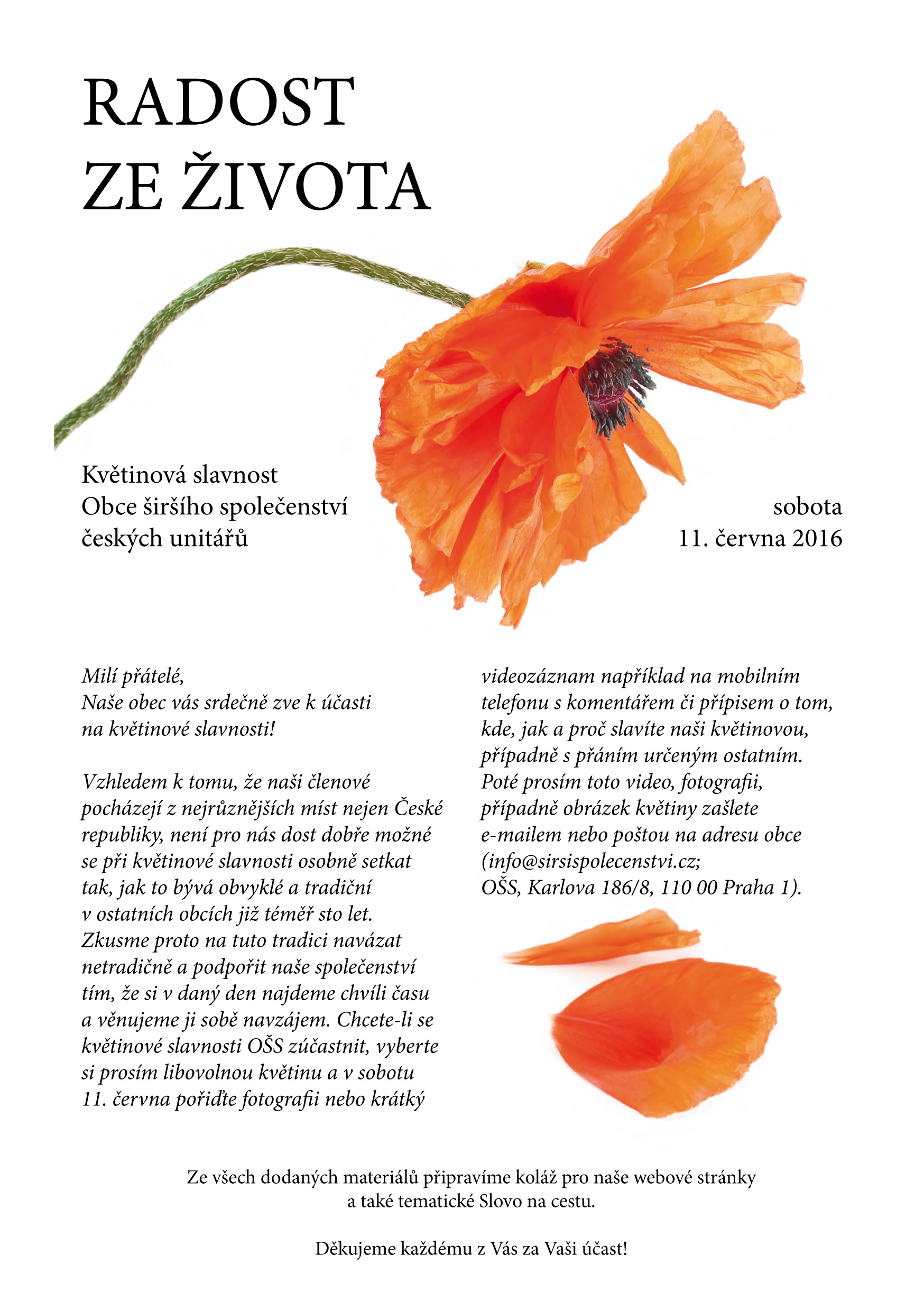 Květinová slavnost 2016V sobotu 11. 6. 2016 jsme zorganizovali premiérovou Květinovou slavnost OŠS, a to v poněkud netradičním pojetí, abychom dopřáli účast všem, kteří o ni mají zájem, bez ohledu na místo bydliště či časovou zaneprázděnost. Naše slavnost byla tedy tak trochu reálná a tak trochu virtuální, ovšem nechyběla při ní radost ze života! |