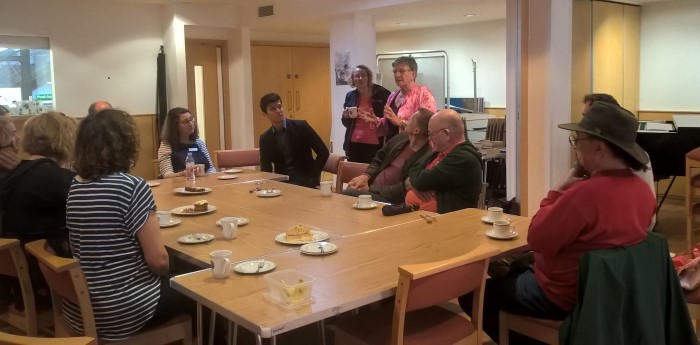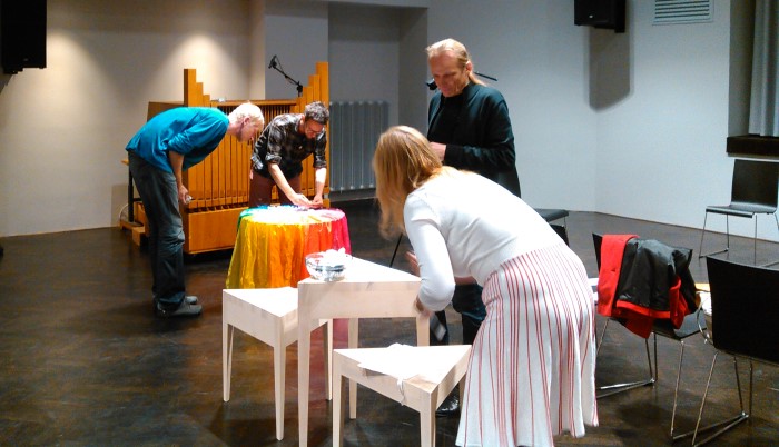 Přiznáváme, že pro vznik Středníku jsme se inspirovali v některých britských unitářských obcích. Třeba ve slavné manchesterské Cross Street Chapel takový program zavedl rev. Cody Coyne již před lety (jak probíhá jejich program i neformální setkání po něm, můžete vitět na těchto dvou fotografiích) a podobný funguje například i v edinburském sboru. Smyslem je nabídnout lidem možnost prožít duchovní shromáždění v době obědové pauzy v zaměstnání nebo prostě jen přerušit všední plynutí času, poskytnout jim přívětivý prostor a podnět pro krátké osobní spočinutí vprostřed dne, při němž se mohou oprostit od soustředění a výkonu, osvěžit a pročistit si mysl, inspirovat se, získat energii pro další aktivity. U nás to nadto znamená to samé i vprostřed pracovního týdne. A aby nechyběla důležitá možnost určité katarze a reflexe prožitého, spojujeme Středník, který sám o sobě trvá 20-25 minut, i s možností popovídat si a sníst si společně během další půlhodiny s sebou přinesený oběd. Na kávu a čas jste při tom zváni naší obcí.
