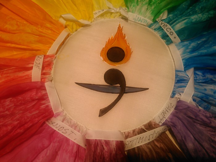 Při každém programu Středníku navíc jeho účastníci tento kruh osobně dotvářejí; obohacují jej svými myšlenkami a osobitými reflexemi, které, zapsané na stužkách, doslova vplétají do barevného spektra. Vytvářejí tak určitou „živoucí paměť“ našeho programu, trvalý otisk své účasti, a zároveň i otevírají pomyslnou bránu do budoucnosti, tedy propojení ke Středníkům, které teprve přijdou. Volný konec poslední navázané stužky je podanou rukou všem příštím účastníkům Středníku.
